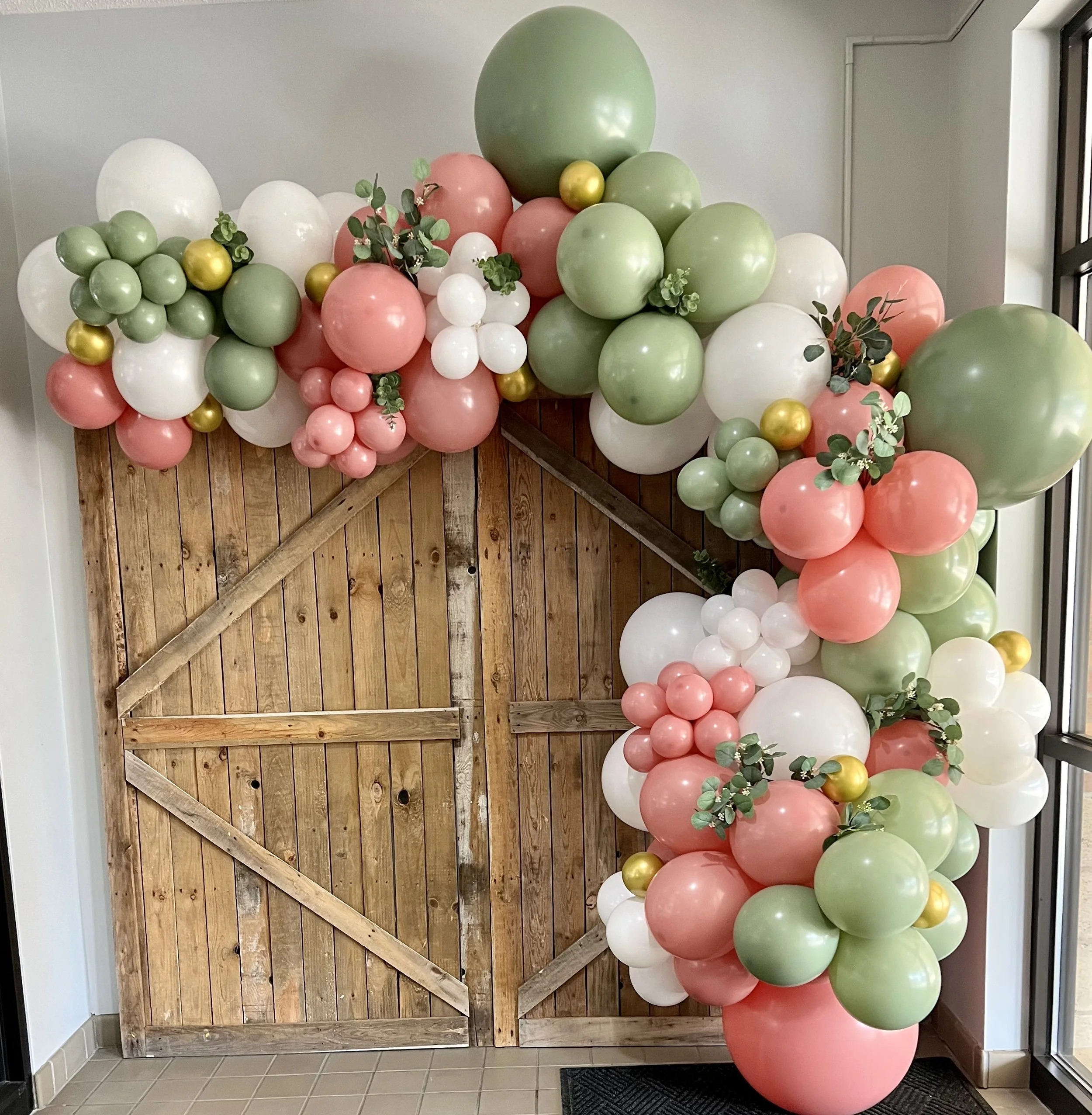 An expansion on the standard garland, the deluxe organinc garland combines five sizes of balloons (5”-36”) for a fuller effect. Can be customized to any color palette and garland length desired.